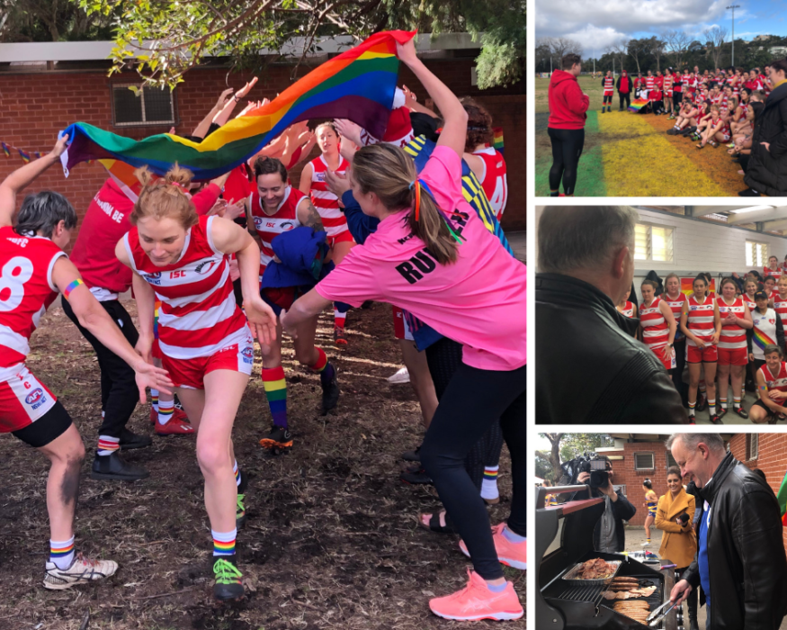 On Saturday June 22, the Breakaways celebrated Pride Round at their home ground of Mahoney Oval in Marrickville. There were some high profile spectators in attendance: Leader of the Opposition and Federal Member for Grayndler, Anthony Albanese and Councillor Anna York from Inner-West Council (representing the Mayor). Albo could be seen flipping snags behind the BBQ, giving coaching tips in the sheds and getting photos with the teams.