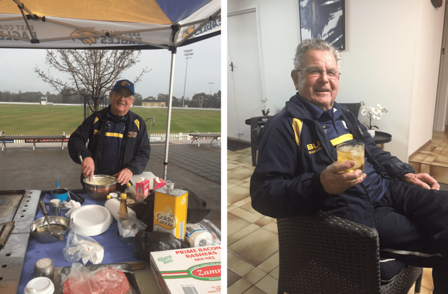For the last 13 seasons Ron’s BBQ has been the thing to look forward to at an East Coast Eagles home game other than a game of football. But after suffering three heart attacks since Christmas Ron hadn’t been able to open up shop until last weekend.  The 83 year old has been dubbed the man with the Golden Tongs and is known for his versatility and charisma behind the BBQ. Ron’s acclaimed menu includes the Eagle Burger, Steak sandwich (your way) and an assortment of pancakes to go along with the largest selection of condiments in Sydney. Ronnie Golden Tongs’ return was warmly welcomed by all in attendance on Saturday who hope to see him fire up the BBQ for years to come.