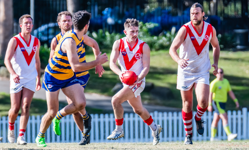 The Students fly forward again from the centre bounce, something they’ve been dominant in all day. Play stops with a stoppage near the behind post. The Dragons try to break out, but the turnover eventually comes, the ball comes charging back in through fast flicking handballs. The forward momentum and pressure become too much, and Hughes earns free kick with a hunting tackle forcing a holding the ball call directly in front of goal. He makes it 4 on the day with a low darting kick just over the umpire’s head and Sydney Uni are breaking away early again.