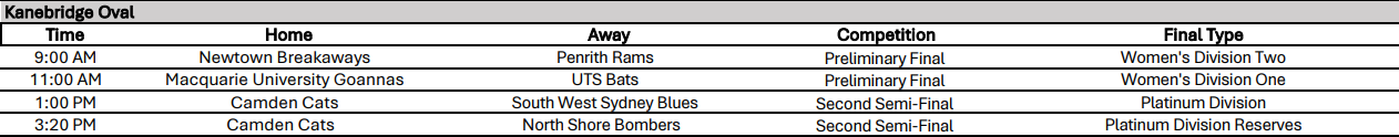 Kanebridge Oval, Kellyville- CLICK HERE