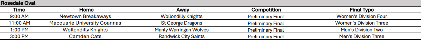Rosedale Oval, Warwick Farm- CLICK HERE