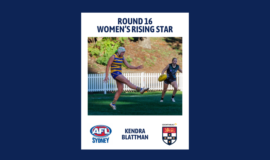 Player Profile: Name: Kendra Blattman AFL Sydney Club: Sydney University Junior Club: Southern Power Position: Utility What is one thing that we don’t know about this Rising Star that they are well known for around the club? Kendra is a popular…
