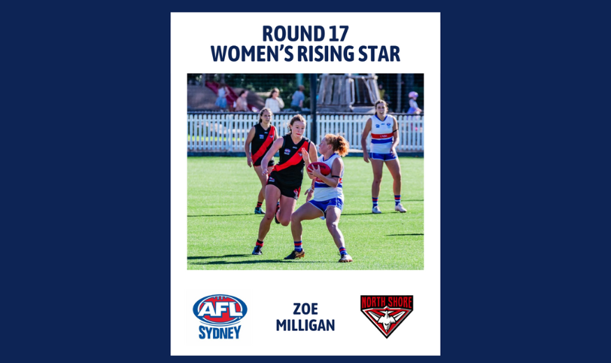 Player Profile: Name: Zoe Milligan AFL Sydney Club: North Shore Bombers Junior Club: St Ives Position: Ruck What is one thing that we don’t know about this Rising Star that they are well known for around the club? Zoe is a…