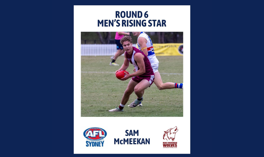 Player Profile Name: Sam McMeeken Nickname: ‘Sammy’ or ‘5am’ AFL Sydney Club: Manly/Warringah Wolves Position: Half back Junior Club: Manly Bombers Favourite activity to do outside of football: Hanging out with mates and having a laugh What is one thing…