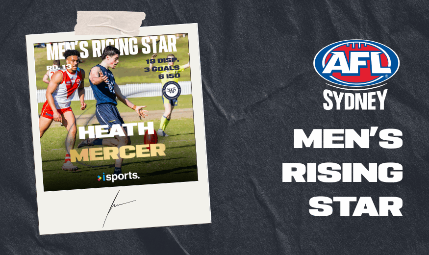 Player Profile: Name: Heath Mercer Position: Mid AFL Sydney Club: South West Sydney Blues Junior Club: Saint Ignatius College / Willoughby Junior What is one thing we don’t know about this Rising Star that they are well known for…