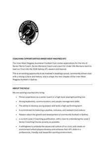Inner West Magpies – Coaching Vacancies 2026